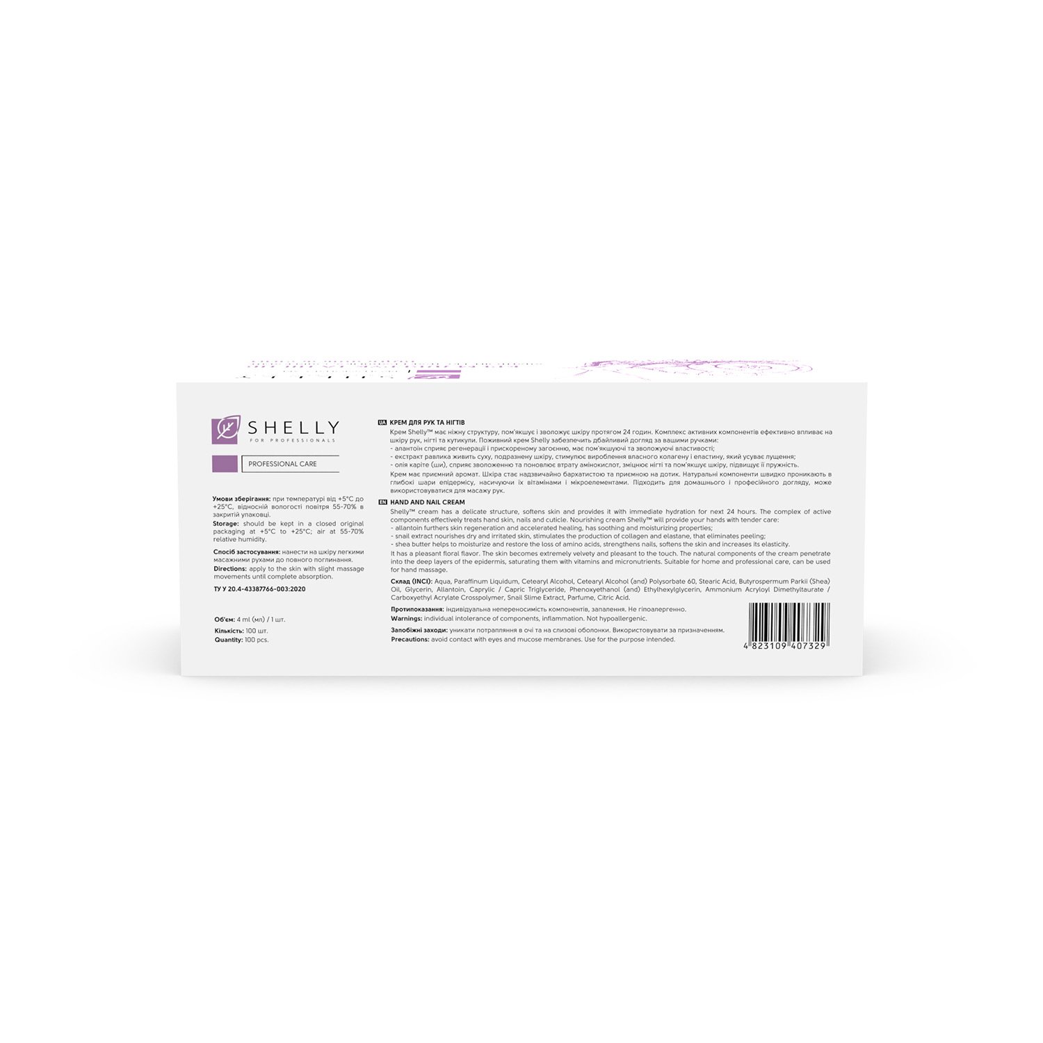 Crema mani e unghie con allantoina, estratto di bava di lumaca e burro di karité Shelly 4 ml x 100 pz