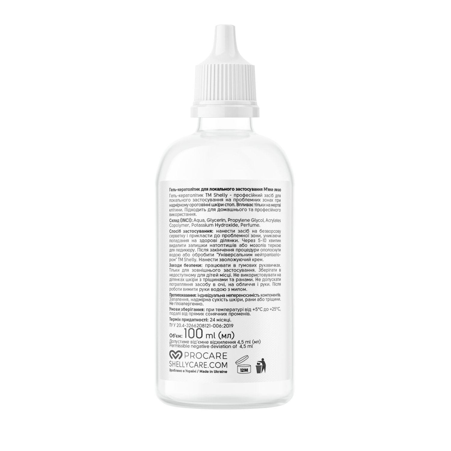 Il gel-cheratolitico TM Shelly è un prodotto professionale alcalino per l’applicazione locale sulle zone problematiche in caso di eccessiva cheratinizzazione della pelle dei piedi. Agisce solo sulle cellule morte. Adatto per uso domestico e professionale. Aiuta ad ammorbidire la pelle dei piedi ruvida e secca, favorisce la facile rimozione di calli e duroni. Il prodotto professionale di alta qualità per pedicure alcalino TM Shelly aiuta ad ammorbidire la pelle dei piedi ruvida e secca e facilita la rimozione di calli e duroni. La formula del gel contiene componenti alcalini attivi che favoriscono un rapido ammorbidimento dei duroni e dei calli secchi. Con qualsiasi tipo di pedicure accelera il trattamento delle zone indurite. Favorisce un’idratazione duratura e aumenta l’elasticità della pelle, potenziando la rigenerazione cellulare. Il risultato è visibile già dopo la prima applicazione. La pelle diventa morbida ed elastica.