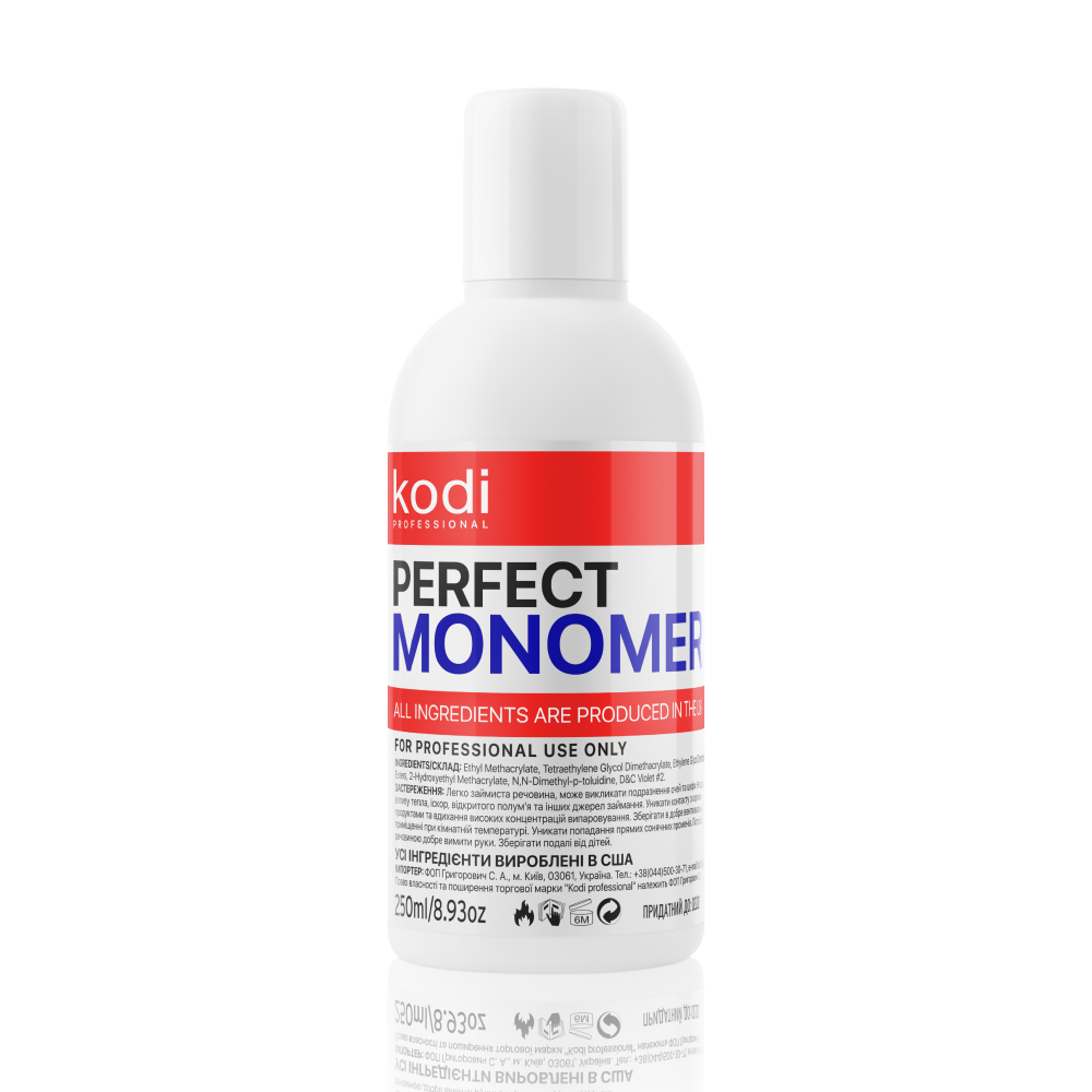 Monomero Viola 250 ml. Liquido acrilico a base di etilmetacrilato. Non contiene metilmetacrilato. Il contenuto di una percentuale significativa di plastificanti garantisce la realizzazione di unghie più sottili, elastiche e più forti. Non danneggia la lamina ungueale. Presentato in due specie. Il monomero viola contiene un colorante che contribuisce al raggiungimento di un colore ultra bianco stabile. Si consiglia di utilizzare per la modellazione delle unghie. Crollo
