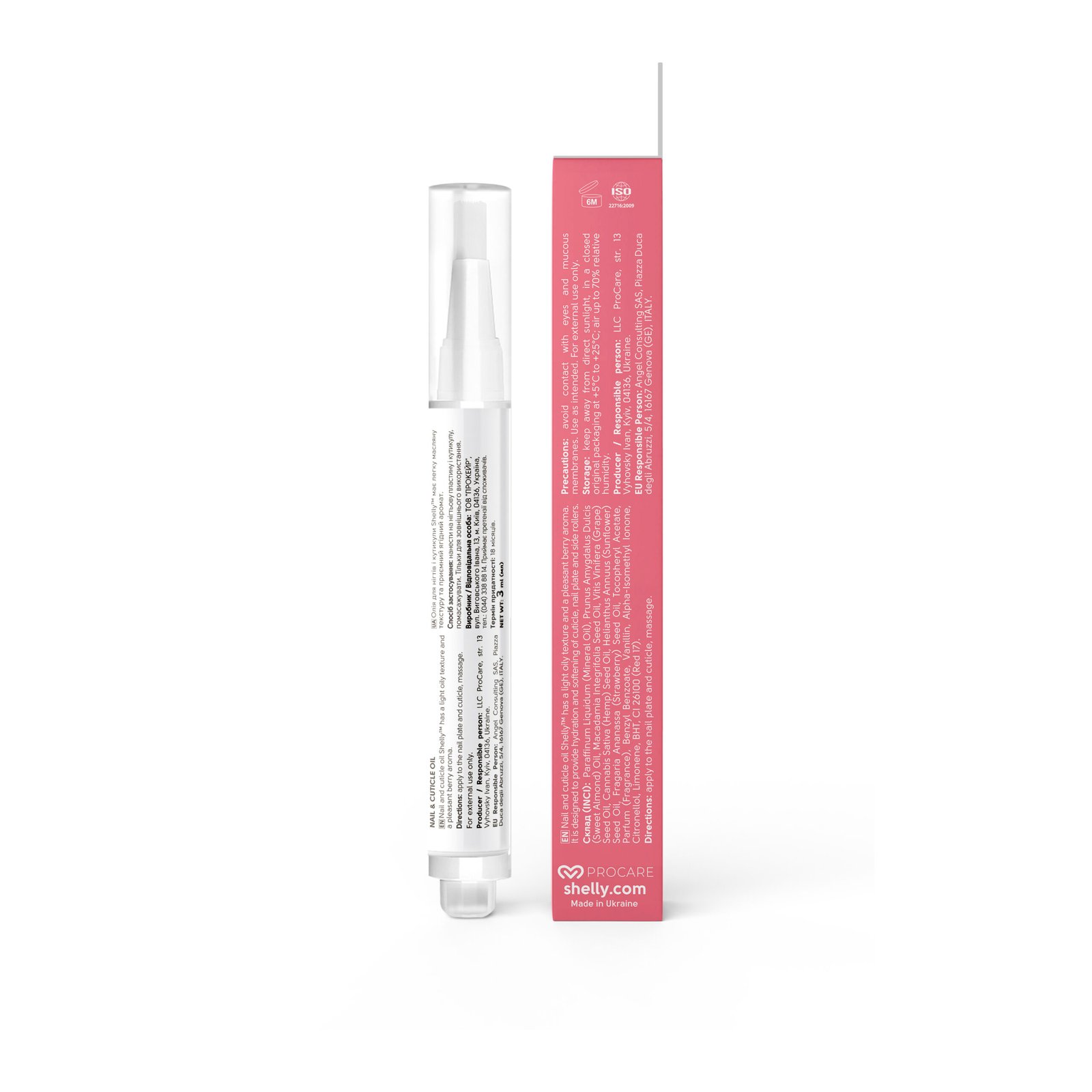 L’olio per unghie e cuticole Shelly™ diventerà un assistente indispensabile sia per il professionista in salone sia per l’uso domestico. Ha una texture oleosa leggera e una piacevole fragranza ai frutti di bosco. L’estratto di fragola, la vitamina E e il complesso di oli saturano immediatamente cuticola, valli laterali e lamina ungueale con l’idratazione e le vitamine necessarie. L’olio rafforza perfettamente le unghie prevenendo fragilità e sfaldatura. Con l’uso regolare restituisce rapidamente alle unghie un aspetto sano e curato. Grazie al flacone compatto può essere portato facilmente durante i viaggi e utilizzato ovunque.