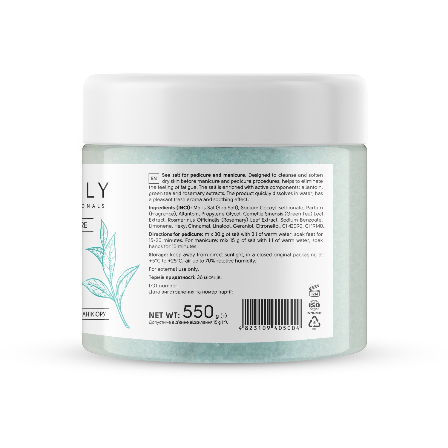 Il sale marino per pedicure e manicure Shelly™ è stato appositamente sviluppato per detergere, ammorbidire e idratare la pelle secca prima delle procedure di manicure e pedicure. La formula cosmetica con allantoina esfolia, stimola i processi di rigenerazione della pelle di mani e piedi e aiuta ad eliminare la sensazione di stanchezza. Gli estratti di tè verde e rosmarino contenuti nel sale sono una fonte di minerali per la pelle e le unghie e garantiscono effetti antinfiammatori e ammorbidenti. Il sale si dissolve rapidamente in acqua formando un elisir nutriente e profumato. Adatto sia per vaschette normali che idromassaggio.