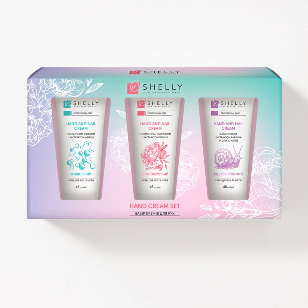 Regala alla tua pelle idratazione e delicatezza con il set di creme mani Shelly™! Il set include tre prodotti: crema nutriente con cheratina, argento ed estratto di arnica; crema ammorbidente con collagene, elastina ed estratto di peonia; crema rigenerante con allantoina, estratto di lumaca e burro di karité. Le creme hanno una consistenza leggera e si assorbono rapidamente. La composizione ottimale di elementi nutritivi aiuta a mantenere l’epidermide sana e curata.